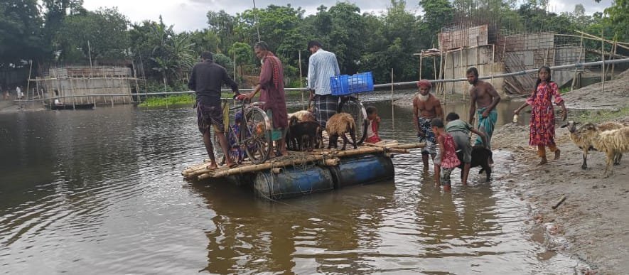 সরেজমিনে দেখা গেছে, সেতুর দুই প্রান্তের সার্টারে বাঁশ ও গাছের গুঁড়ি ঠেস দিয়ে রাখা হয়েছে। সেতু না থাকায় ড্রামের ভেলায় ভর করে ঝুঁকি নিয়ে প্রতিদিন ছড়া পারাপার করছেন নারী, শিশু ও বয়স্কসহ শত শত মানুষ। এতে প্রায়ই দুর্ঘটনার আশঙ্কা তৈরি হচ্ছে।