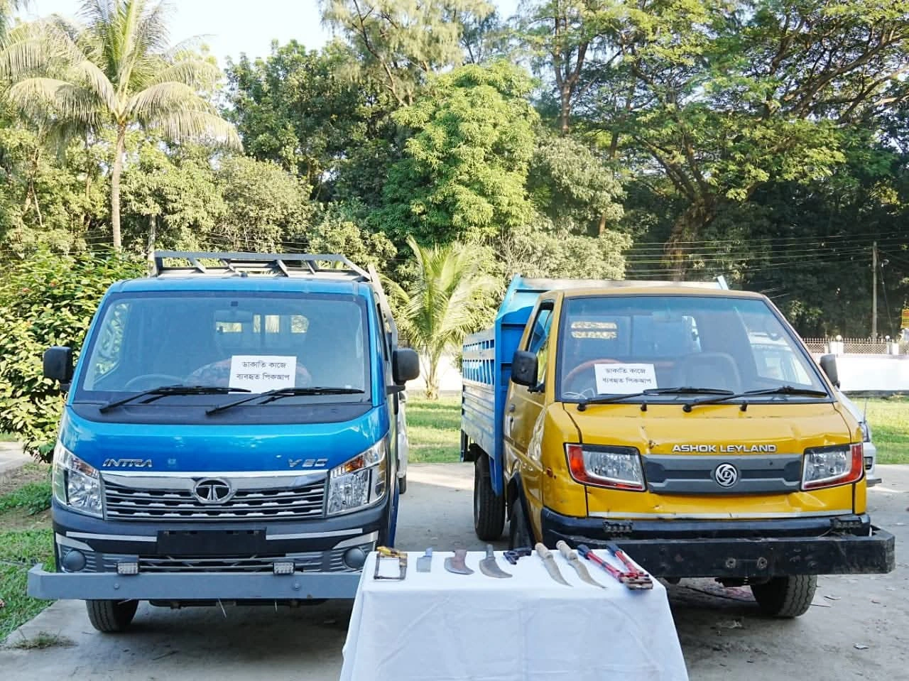 ২টি রেজিস্ট্রেশনবিহীন পিকআপ (নীল ও নীল-হলুদ রংয়ের)