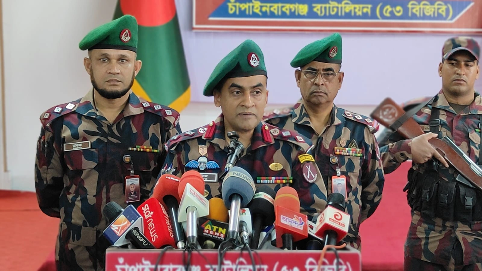 সাম্প্রতিক সময়ে দেশের সার্বিক আইনশৃঙ্খলা পরিস্থিতি নিয়ন্ত্রণে চাঁপাইনবাবগঞ্জ ব্যাটালিয়ন (৫৩ বিজিবি) সীমান্ত এলাকায় বিশেষ টহল, অতিরিক্ত চেকপোস্ট স্থাপন এবং গোয়েন্দা নজরদারি জোরদার করেছে।