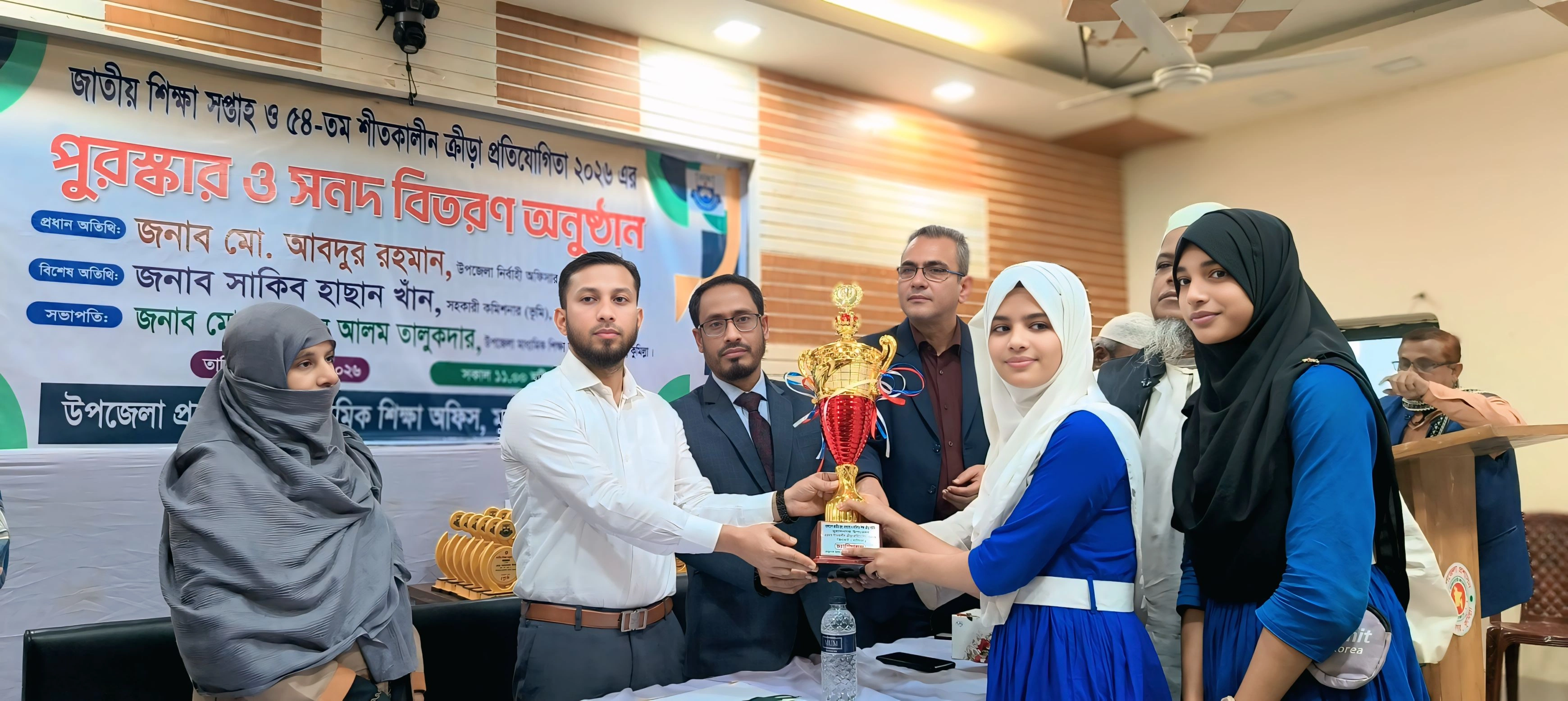 জাতীয় শিক্ষা সপ্তাহ–২০২৬ উপলক্ষে শ্রেষ্ঠ প্রধান শিক্ষক, শ্রেষ্ঠ সহকারী শিক্ষক ও শ্রেষ্ঠ শিক্ষার্থী নির্বাচিতদের পাশাপাশি ৫৪তম শীতকালীন ক্রীড়া প্রতিযোগিতার বিভিন্ন ইভেন্টে বিজয়ী শিক্ষার্থীদের হাতে পুরস্কার তুলে দেওয়া হয়।