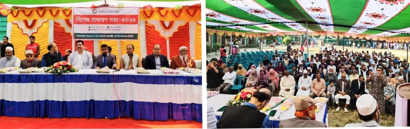বাংলাদেশ রেড ক্রিসেন্ট সোসাইটি চাঁপাইনবাবগঞ্জ ইউনিটের বিশেষ সাধারণ সভা অনুষ্ঠিত হয়েছে। শনিবার (২২ নভেম্বর) সকাল ১০টায় কালেক্টরেট গ্রিন ভিউ উচ্চ বিদ্যালয় প্রাঙ্গণে সভার আয়োজন করা হয়। অনুষ্ঠানের সভাপতিত্ব করেন আহ্বায়ক কমিটির ভাইস-চেয়ারম্যান ও চেম্বার অব কমার্স এন্ড ইন্ডাস্ট্রির সভাপতি আব্দুল ওয়াহেদ।