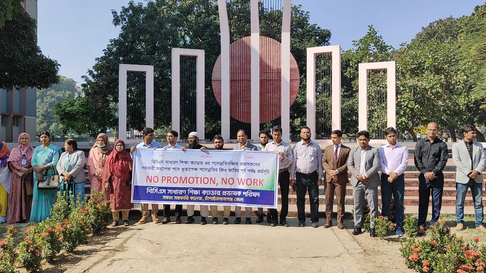 চাঁপাইনবাবগঞ্জ: বিসিএস সাধারণ শিক্ষা ক্যাডারের পদোন্নতিবঞ্চিত যোগ্য প্রভাষকদের সহকারী অধ্যাপক পদে ভূতাপেক্ষ পদোন্নতি (জিও) জারির দাবিতে গতকাল (১৮ নভেম্বর) চাঁপাইনবাবগঞ্জ জেলার নবাবগঞ্জ সরকারি কলেজ শহীদ মিনার প্রাঙ্গণে এক প্রতিবাদ কর্মসূচি অনুষ্ঠিত হয়েছে।