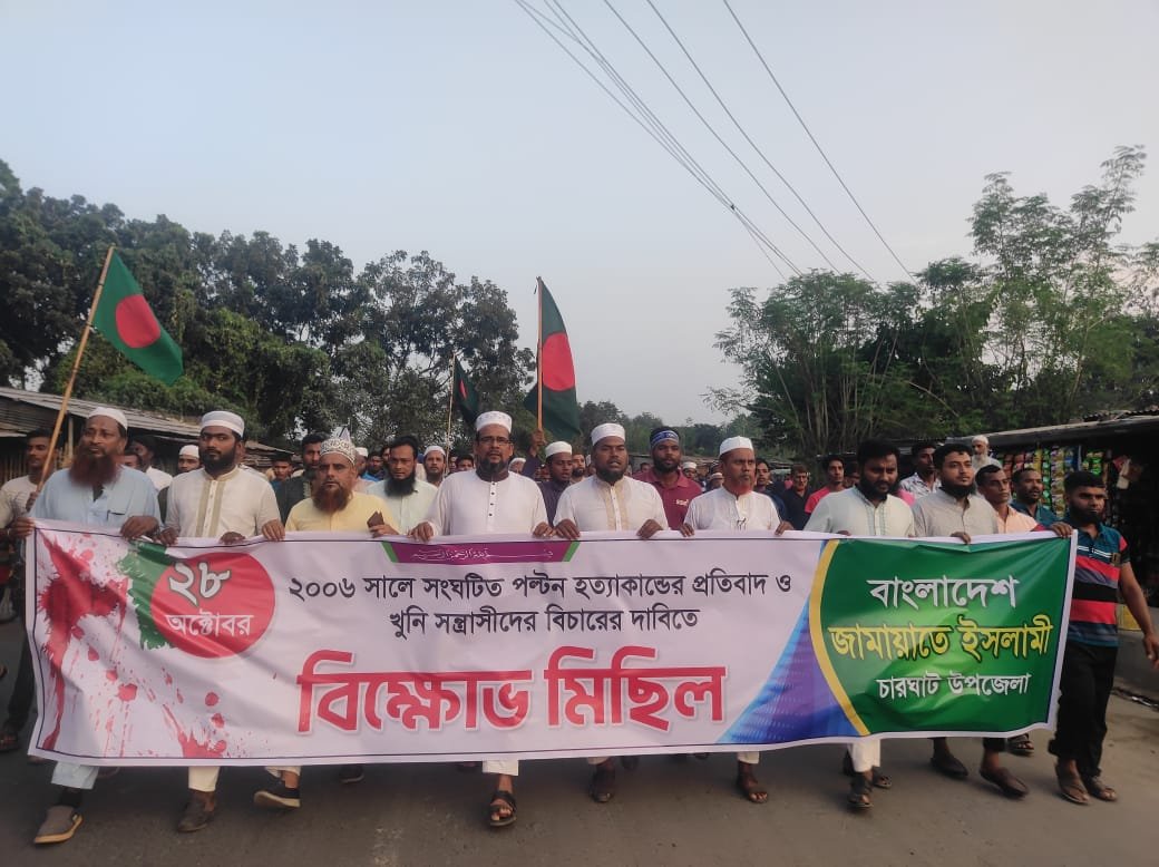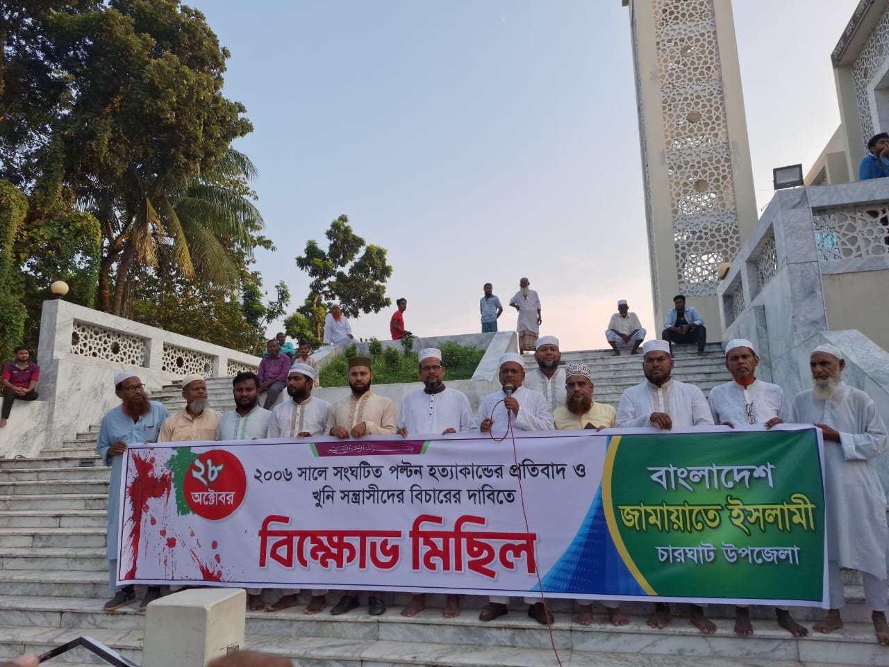 ২০০৬ সালের ২৮ অক্টোবরে সংঘটিত পল্টন হত্যাকান্ডের প্রতিবাদ ও খুনি সন্ত্রাসীদের বিচারের দাবিতে রাজশাহীর চারঘাট উপজেলা জামায়াতের বিক্ষোভ মিছিল ও সমাবেশ অনুষ্ঠিত হয়েছে।