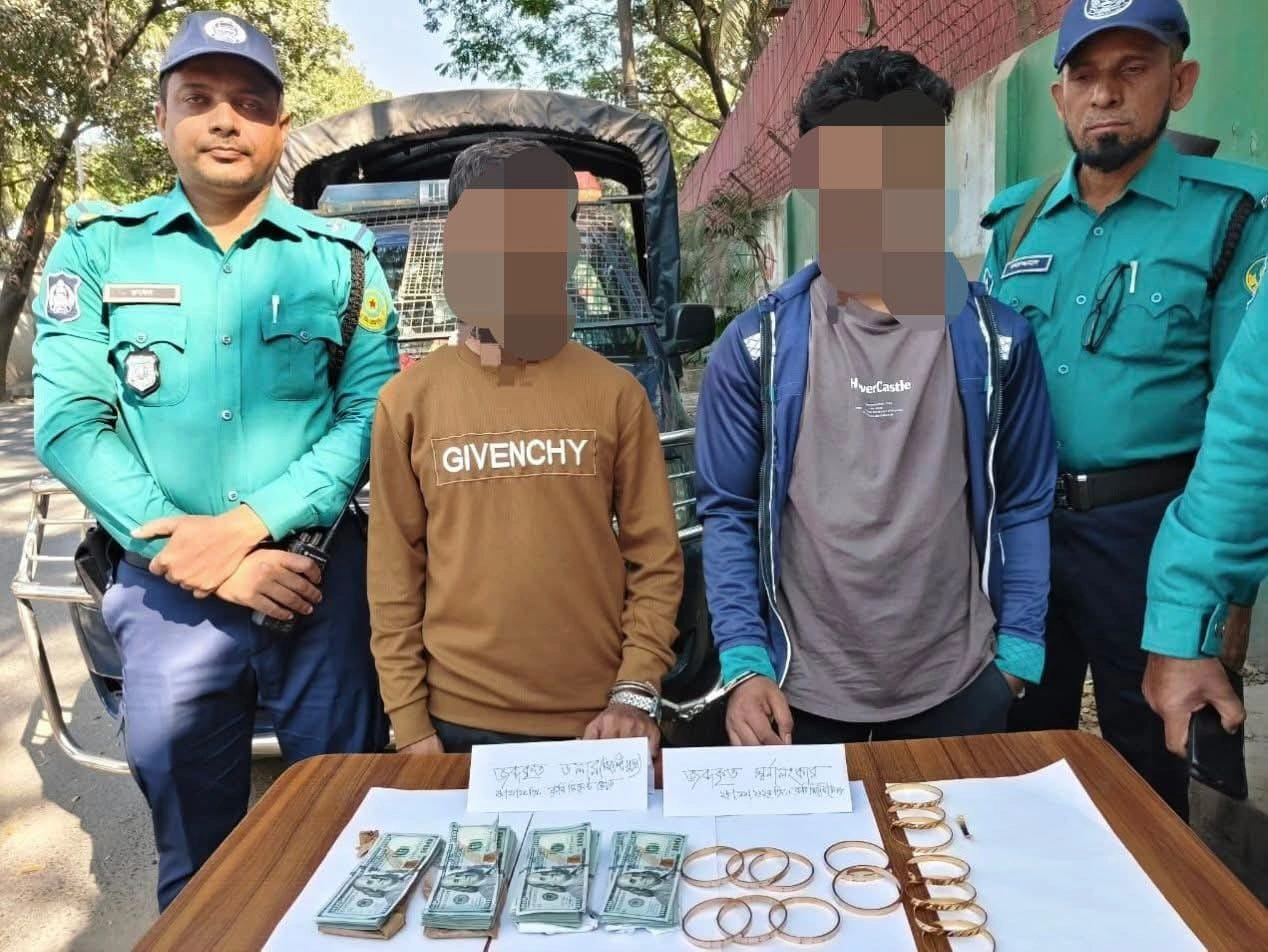 গত ২৮ নভেম্বর সকাল সাড়ে ১১টার দিকে বিমানবন্দর থেকে হাজারীগলি সিনেমা প্যালেসগামী একটি সিএনজি অটোরিকশায় সন্দেহজনক তল্লাশি চালিয়ে এসআই (নিঃ) মো. আরিফ হোসেন, এএসআই (নিঃ) রুবেল বড়ুয়া ও সঙ্গীয় টিম দুই পাচারকারীকে আটক করেন।