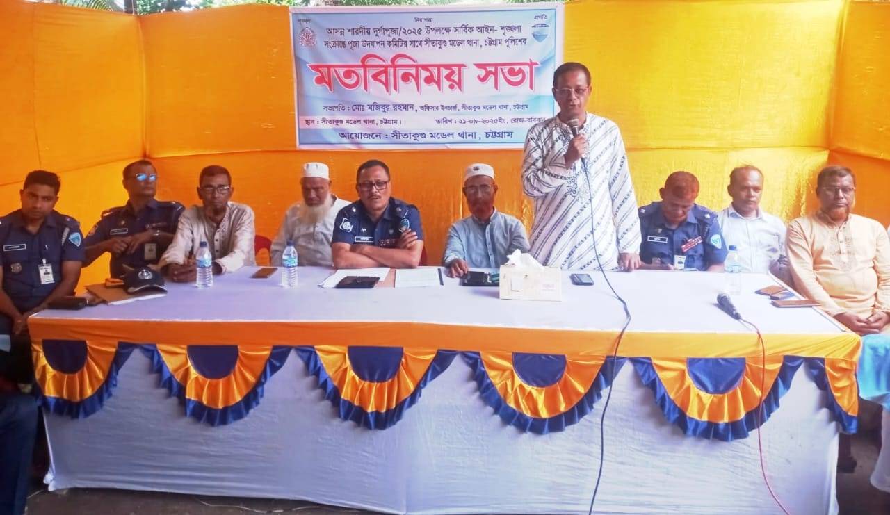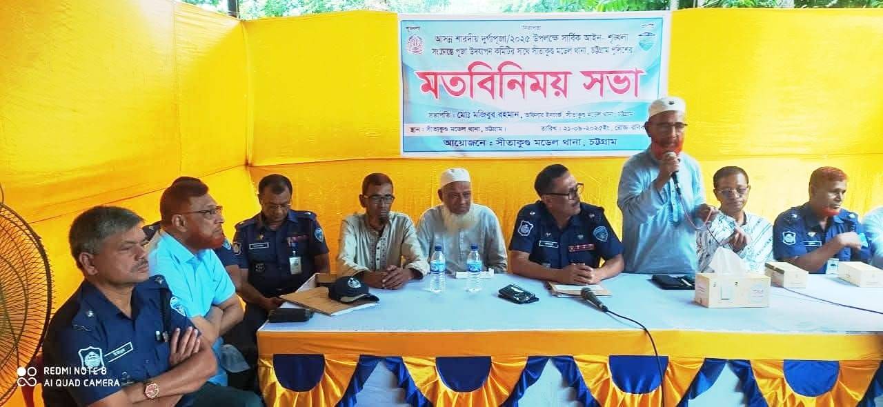 সীতাকুণ্ড মডেল থানার ওসি মোঃ মজিবুর রহমানের সভাপতিত্বে অনুষ্ঠিত মত বিনিময় সভায় বক্তব্য রাখেন উপজেলা বিএনপির আহবায়ক ডাক্তার কমল কদর, পৌরসভা বিএনপির আহবায়ক জাকির হোসেন,উপজেলা বিএনপির সদস্য সচিব কাজী মহিউদ্দিন,জামায়াতে উপজেলা সেক্রেটারী মোঃ তাহের, সাবেক কমিশনার ও বিএনপি নেতা সামছুল আলম আজাদ,জামায়াত পৌর সভাপতি আলী আকবর,পৌর সদর ব্যবসায়ী সমিতির সভাপতি মোঃ নাসির উদ্দিন,পৌর বিএনপির সদস্য সচিব সালেহ আহমদ সলু, পৌর জামায়াতের সেক্রেটারী,,, উপজেলা পুজা কমিটির সভাপতি অমলেন্দু কনক,সাধারণ সম্পাদক বাবু বীর বাহাদুর,শাশ্রী, ইন্জিঃ ব্রজ্যধাম জলদাশ সহ বিভিন্ন মন্দরের নেতৃবৃন্দ বক্তব্য রাখেন।
