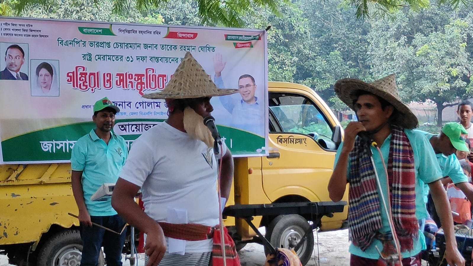 অনুষ্ঠানে স্থানীয় নেতাকর্মী, সাংস্কৃতিক ব্যক্তিত্ব ও সাধারণ জনগণের উপস্থিতিতে গম্ভীরা, সংগীত ও নাটকের মাধ্যমে দেশের বর্তমান সামাজিক ও রাজনৈতিক প্রেক্ষাপট তুলে ধরা হয়।